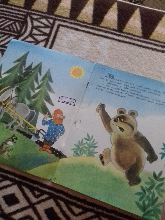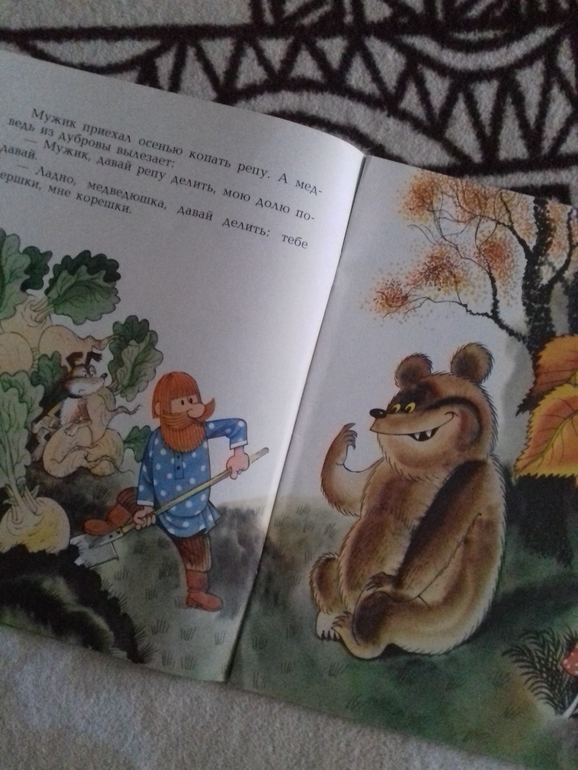 Сказки небольшая, для слушателя нашего возраста в самый раз. Картинки большие, Илюше очень понравилось наблюдать за чтением.