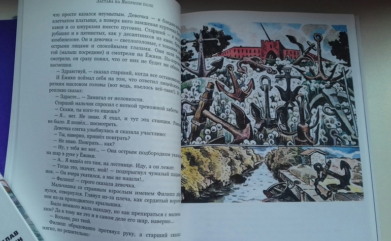 Библиотеки (городские, сельские, домашние)Несколько дней читаю посты о книгах Крапивина( спасибо большое за них девчонкам!), которого тоже очень люблю. Но книги с иллюстрациями я тоже люблю) Повесть "Застава на Якорном поле" выпустил ИДМ в серии БИСС( т.е. большое ИЛЛЮСТРИРОВАННОЕ собрание сочинений), но с иллюстрациями там очень-очень бедненько: всего 5 черно-белых на всю книгу. Я вспомнила, что читала в детстве эту повесть в журнале "Пионер". Там картинок было гораздо больше, и они были красивые и цветные. Решила исправить недоработку издателей))), нашла иллюстрации из "Пионера" Е. Медведева( в самой книге иллюстрации Е.Стерлиговой), распечатала на принтере, обрезала и вклеила в нужных местах))). Итого к 5 черно-белым добавилось 20 цветных! Посмотрите, что из этого получилось.