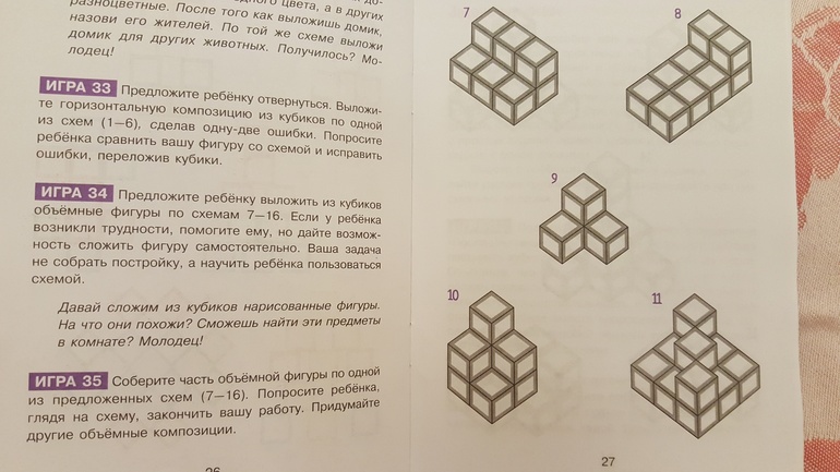 Очень впечатлили IQ кубики. Давно уже присматривалась к этим играм, но думала, что еще рановато. Но, прочитав задания, приложенные к кубикам, поняла, что будем начинать играть уже сейчас. А задания там очень интересные и разноплановые, направленные на овладение счетом, развитие пространственного мышления, конструирования, логики: