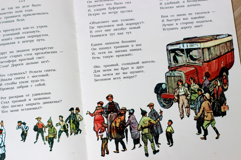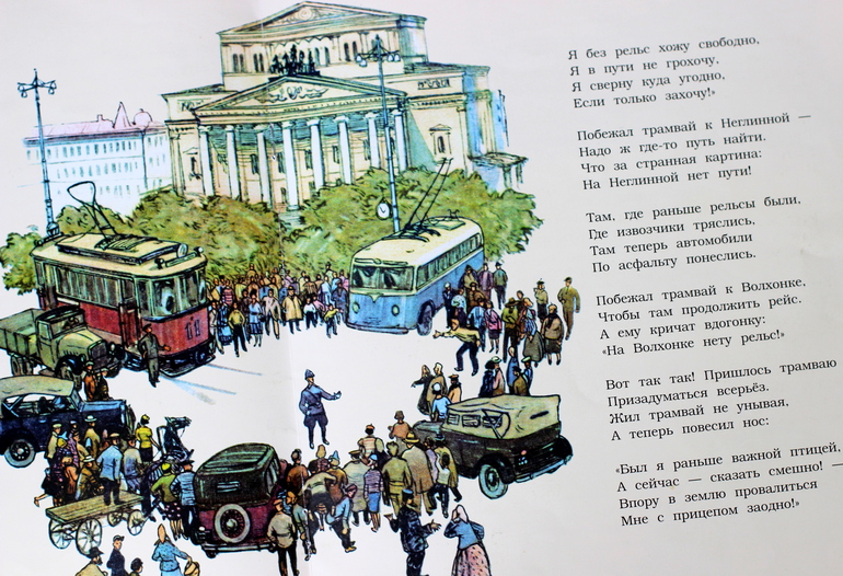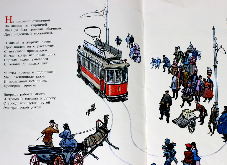 вторая книга про трамвай. История о том, как трамвай был сначала самым важным транспортом в столице, как он трудился, а затем отошел на второе место- его потеснил автобус, троллейбус и метро. но трамвай изменился, обновился и стал по-прежнему нужным людям) это коротко) вот развороты