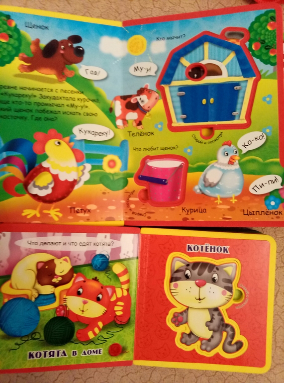 Вот такие замечательные книжечки от Азбукварика. Листать можно и слева направо и справа налево. Если нажать на носик, будет звучать песенка.
