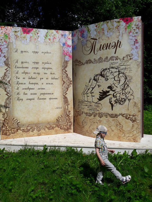 Лето в этом году огорчает плохой погодой, но тем радостней ловить тёплые деньки, радоваться солнышку и стараться выбраться куда-то, поближе к природе) Сегодня выбрались в усадьбу А.С. Пушкина в Вяземах, отличное место, погуляли по парку, музеи не посетили, оставили их на будущее)) Вот такую книгу встретили, сын порывался полистать))