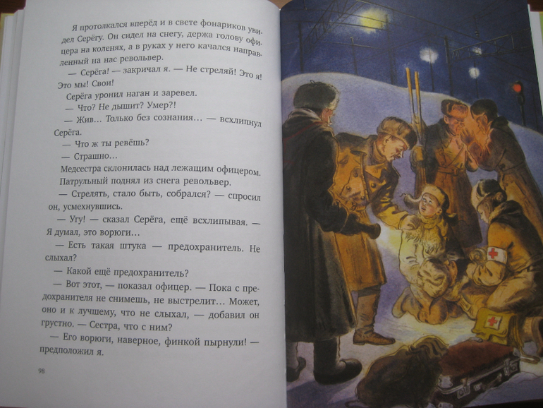 Но изъяны оформления с лихвой компенсирует содержание. Как говорит моя мама: "Мне в книгах важно содержание, а вы как сороки кидаетесь на иллюстрации" :-) Борис Алмазов пишет роскошно! Причем, маленькие шедевры получаются у него даже из рассказов. Приведу кусочек, который чуть не слезу вышибает от умиления: