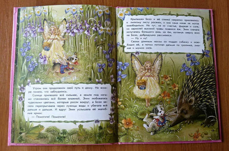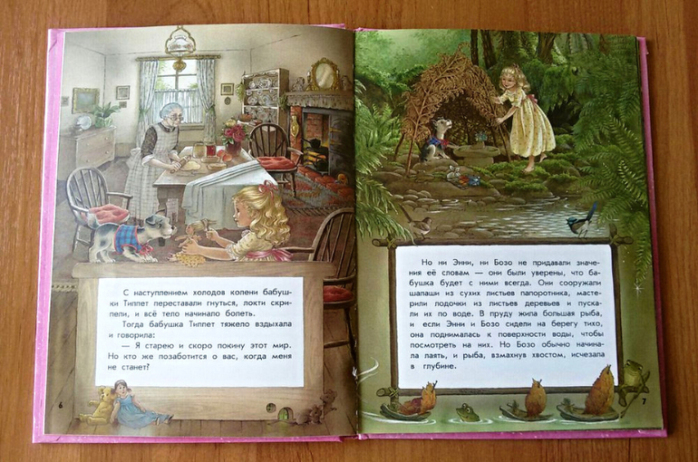 "Так Энни и Бозо стали жить в волшебной стране, но они часто прилетали навестить бабушку. С ними прилетали и все феи и эльфы. Они резвились и играли в ее чудесном саду. А бабушка Типпет больше не тревожилась о том, кто присмотрит за девочкой и собакой, когда она покинет этот мир, - она знала, что теперь Энни и Бозо прекрасно могут позаботиться о себе сами".