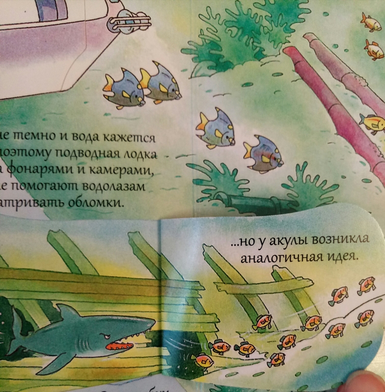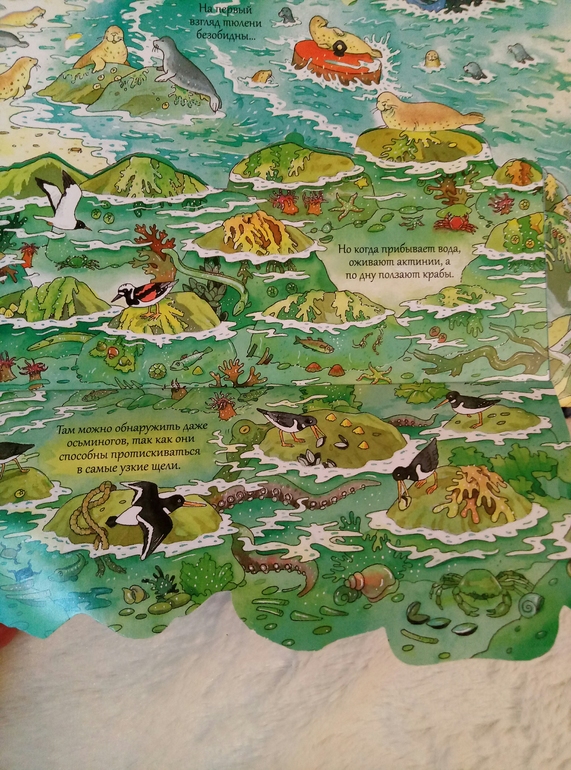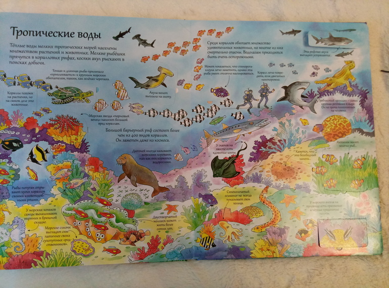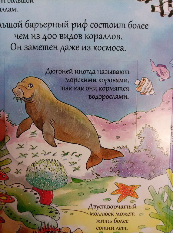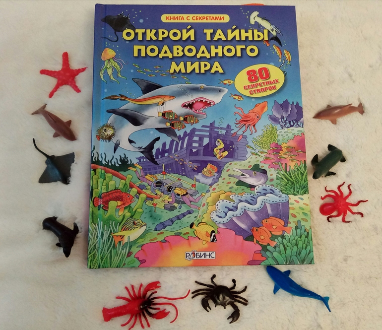 Я никогда не забуду свой дикий восторг, когда первый раз нырнула в Египте и увидела весь этот волшебный, яркий и живой мир!это были просто нереальные ощущения) а как я люблю походы в дельфинарии, океанариумы!наверно, даже больше, чем мои дети) поэтому эту книгу я тоже люблю особой любовью) Итак, как и обычно, 8 разворотов и 80 секретных створок. вот интересно, кто нибудь когда нибудь пересчитывал створки в книгах робинс))
