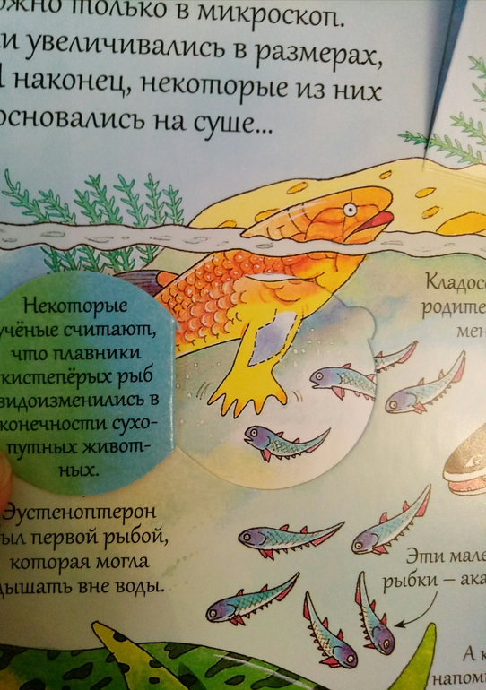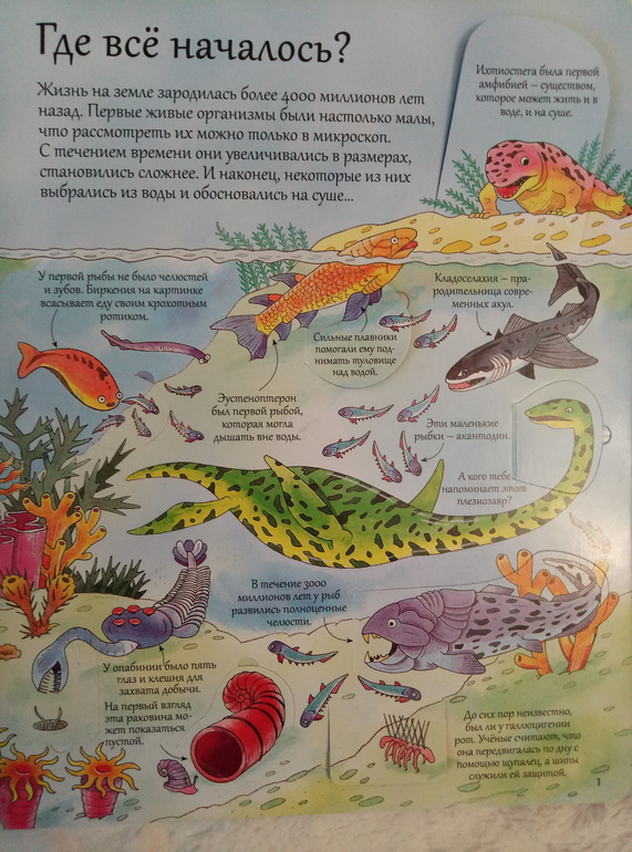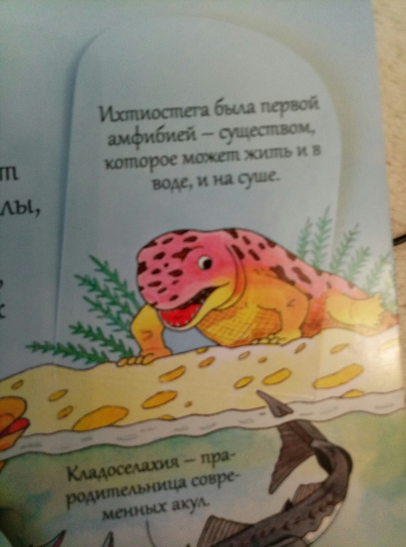 И вот опять таки, что мне нравится в энциклопедиях Робинс, что в таких ярких, игровых, казалось бы несерьезных книгах на самом деле много толкой, нужной информации, которая ребенком будет совершенно легко, в игровой форме и усваиваться, и надеюсь, запоминаться) я вот, например, раньше про первое сухопутное существо и не знала, а теперь, думаю, навсегда запомню эту милашку)