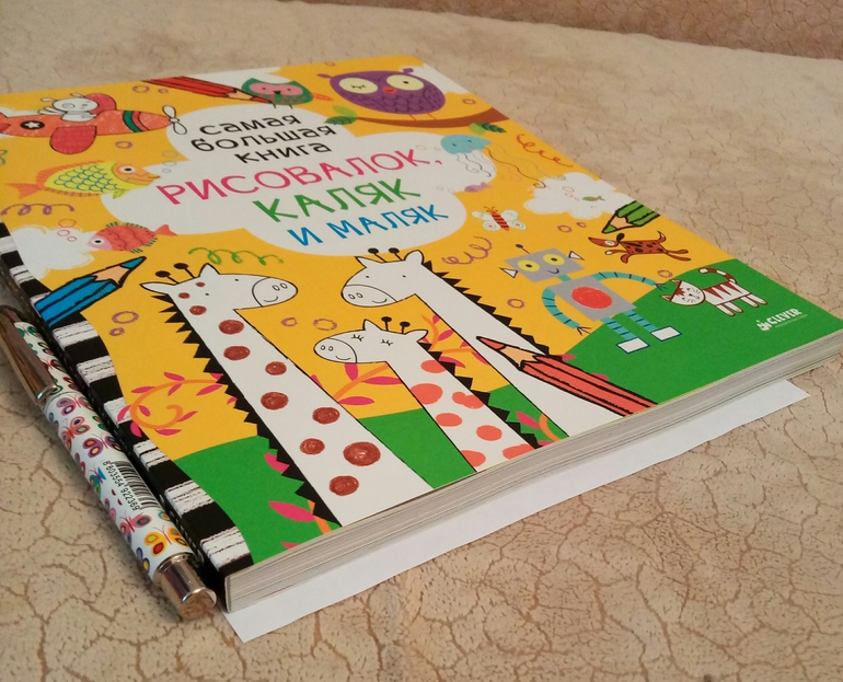 Давно я хотела приобрести какую нибудь рисовалку от Клевера для младшего сына на вырост. Когда то давным давно к таким рисовалкам я очень скептически относилась, но волей случая такая книга оказалась у моей дочери, и я поняла, как я ошибалась. Естественно, у нее была про котов) и я дочку часами не слышала, не видела) поэтому что и младшему нужно что то подобное, не сомневалась) у Клевера очень много различных рисовалок, каляк, маляк. Замучившись выбирать, я выбрала по принципу самая большая) и она реально большая!)