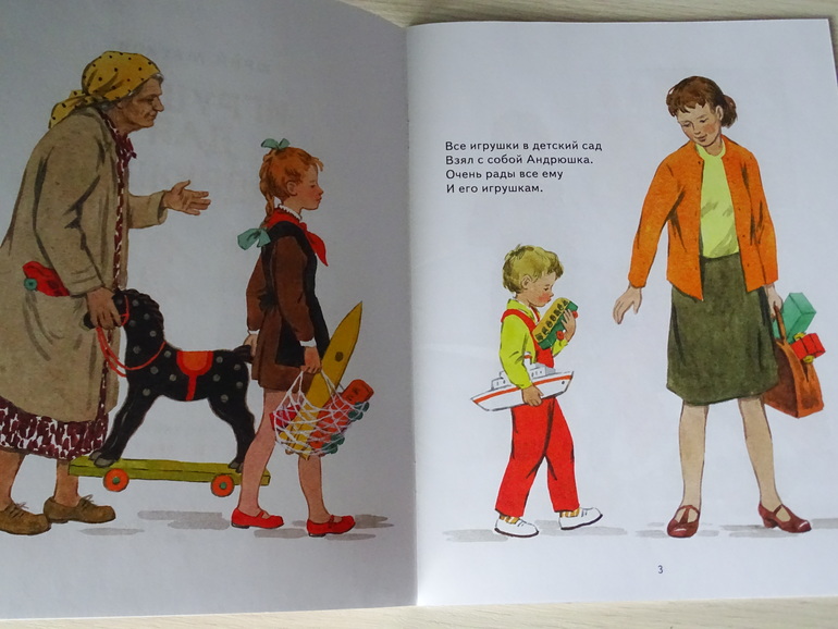 Эту классную тонкую книжечку мы читаем уже год,с прошлого дня рождения сына.Она оказалась очень актуальной для нас,так как игрушки Андрей таскал носил в сад в большом количестве)))Благо,сейчас немного успокоился...