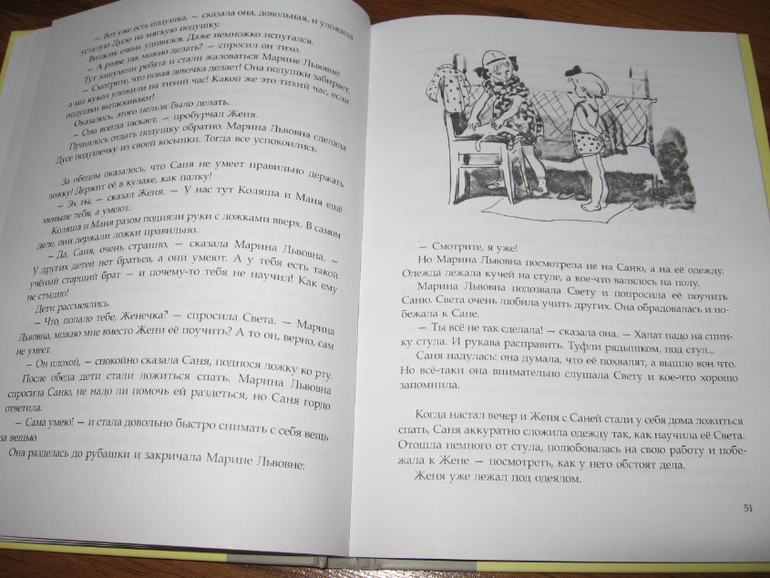 Сын почти все их уже знает наизусть, но все равно садится рядышком, когда мы с Алисой их читаем. Хотя у дочери почти никогда не хватает терпения на все четыре сказки, слушает одну-две и убегает по своим делам. Или сама сочиняет сказки по картинкам.