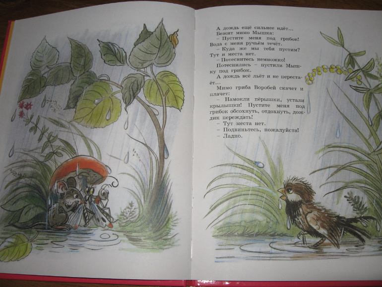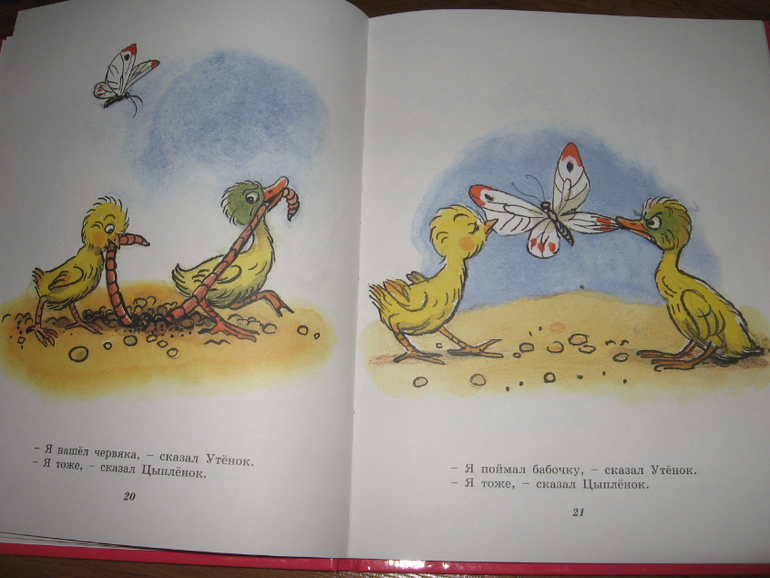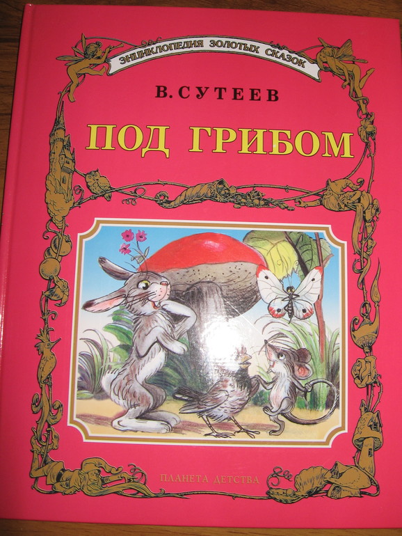 Эту книгу в ДК уже тоже показывали, именно тут я о ней и узнала. Нет, Сутеева-то я с детства любила, а узнала о том, что конкретно эта книга стоит всего три копейки даже в Лабиринте. Естественно на Сутеева трех копеек не жаль, хоть и старенький сборник у нас с его сказками уже был. А детям все новенькое нравится гораздо больше, чем старенькие и любимые мамины-папины книжки, поэтому и книга новая читается, а старая спокойно отдыхает на полке.