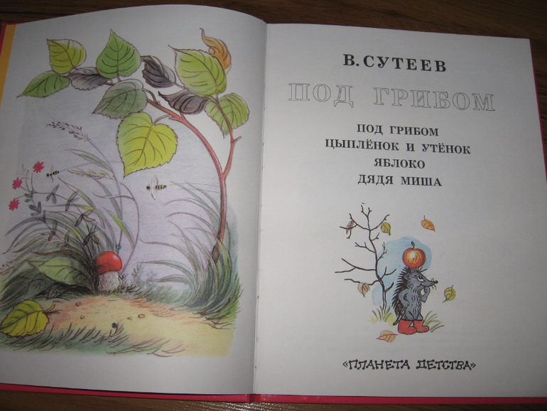 Сказок в книге всего четыре: "Под грибом", "Цыпленок и утенок", "Яблоко" и "Дядя Миша".