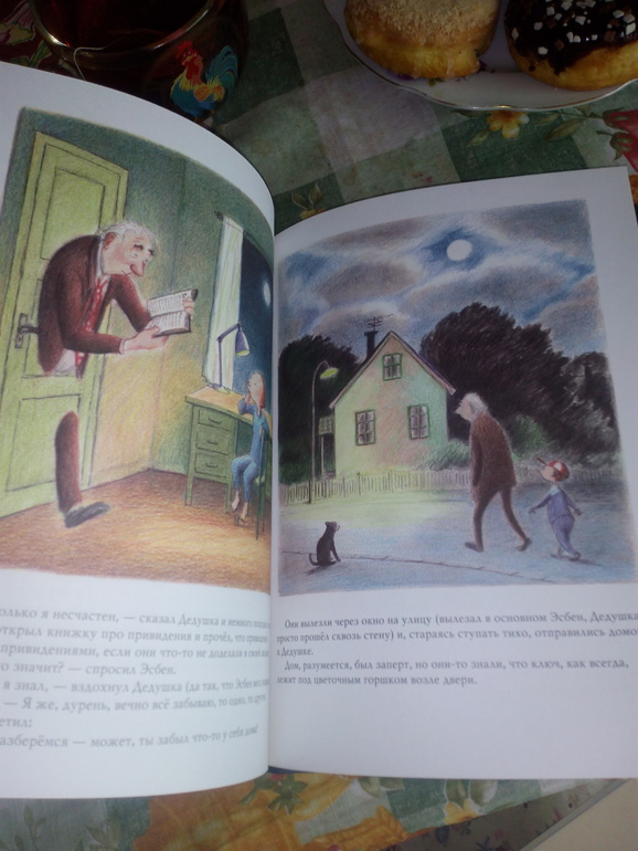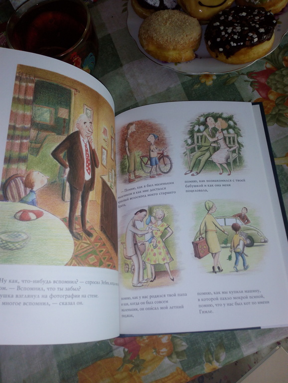 Книгу про дедушку я прочитала сама,чтоб понять как лучше её прочитать Тимке ...могу сказать что это не та книга которая прям должна быть ...но и против неё я не могу сказать...тема смерти конечно увы в нашей жизни есть и от этого ( хотя так хочется сбежать и спрятаться),но увы и ах...и в этой книге именно для ребёнка ,эта тема представлена очень спокойно ...многое можно обсудить .( напомню лежала она у кассы, а там всё по 50р)))
