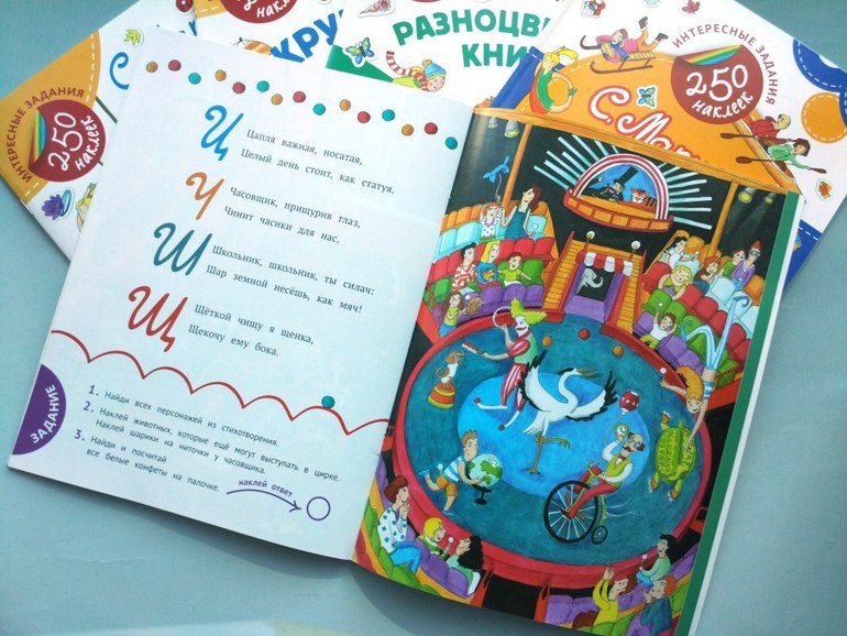 Размышления обо всем этом натолкнули нас на идею создания серии по произведениям Самуила Маршака с современными иллюстрациями, игровыми заданиями и наклейками. Новый взгляд на любимые стихи книгам подарила художница Маша Алая. Задания нацелены на проверку внимания и наблюдательности. Выполнить их помогут 250 наклеек, спрятанных в каждой книжке.