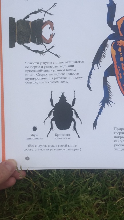 В книге есть силуэты жуков и они реальных размеров. Такие огромные есть жуки -жуть!