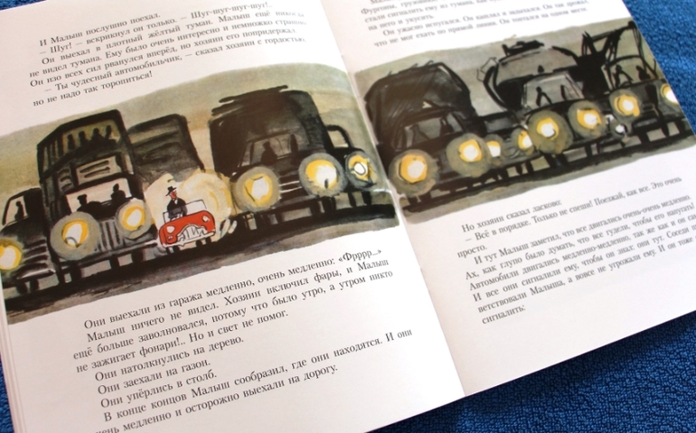 История очень добрая, милая - читать просто приятно. Все истории в книге показывают читателю какую-то ситуацию из которой можно получить первое представление о машине и ее частях, о некоторых животных и насекомых, о доброте и взаимопомощи, об автосервисе и тумане. Но самое наше любимое - это паром.
