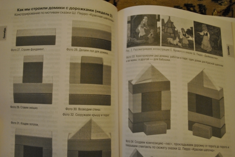 6. И.А. Лыкова «Конструирование в детском саду». Средняя группа. Книга тоже адресована для воспитателей. Также как и предыдущая книга рассчитана на 9 месяцев занятий. Все также подробно расписано. Виды конструирование разнообразны: из снега на улице, из бумаги, из строительного материала, из бытовых материалов, из природного материала, из фольги, из салфеток, из картона. 127 страниц, черно-белые рисунки.