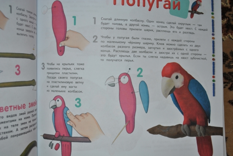 Каждый раздел начинается с яркой красивой фотографии с пластилиновыми фигурками: в деревне, в саду, в зоопарке, в море. Приемы простые, животные не особо затейливые, - как раз для дошколят. Рони Орен «Секреты пластилина» я покупала, но честно говоря, я ее передарила знакомой девочке на семилетие.
