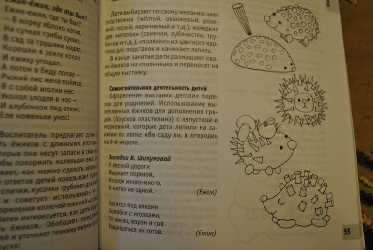 1. Это книга, ради которой и затевался лабиринтовский заказ. Дочь полюбила лепить из пластилина. Как лепить все что смогла, я ей показала. Потом пришлось перебирать в интернете литературу по подделкам из пластилина. Выбрала Б. Кьюксарт «Пластилинолепие». Занятия с пластилином для детей дошкольного возраста. В книге 142 цветные страницы. Удобно, что в оглавлении дан не текст, а маленькие фотографии с изображением фигурок. Вначале идет раздел «Материалы»: из чего и с помощью чего можно лепить. Дальше «Основные приемы»: как лепить глаза, уши, хвосты и т.д, как создать текстуру. Дальше четыре раздела: