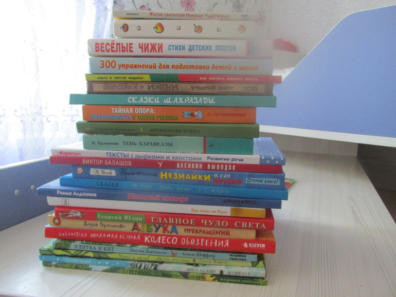 Раньше я покупала реально МАЛО книг. А год назад у меня случился переклин, я стала покупать много книг для сына на будущее. Конечно, оформляя заказ, что-то брала и дочке (но основную массы книг мы берем в библиотеке - нашей сельской и областной детской в городе). Себе не беру практически ничего. Есть кое-какие хотелки, но стараюсь подходить рационально - всего не укупишь. Поэтому мои скромные стопочки за год меньше, чем у кого-то за месяц набегает( Сейчас опять стала покупать меньше.