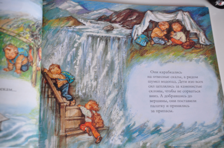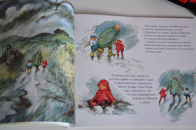 Первый рассказ о дождливом дне. Погуляв с бабушкой под дождем, дети отправились " в поход". Они обошли весь дом, но для них это были океаны, горы, пещеры...Экспедиция закончилась на Северном полюсе (чердаке), где они нашли сокровища.