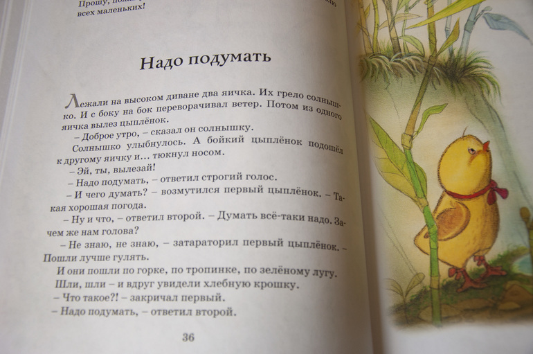 ..Да, - сказал первый, я все-таки подумал. ... Бойкий цыпленок понял: иногда надо все-таки думать. А иначе - зачем же нам голова? Не только ведь кукарекать!