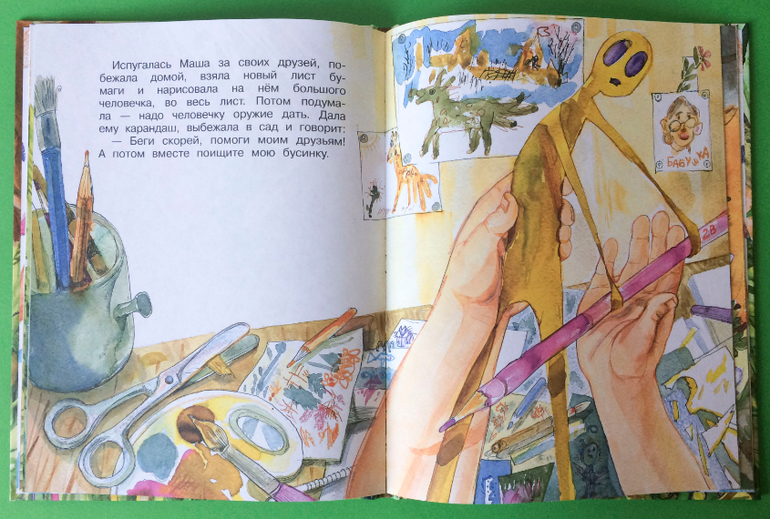 Во-вторых, тематика нарисованных и оживших персонажей. У нас отлично идут "Капризная кошка" Сутеева (там рисуется домик для кошки и продумывается, как она там будет жить), "Витя, Фитюлька и Ластик" Берестова, где нарисованный человечек оживает и "Бумажные куклы" от Джулии Дональдсон (душевная, чисто девчачья книжка).