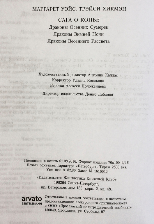 Последняя в заказе, но не последняя в моей душе! Сколько лет я ждала переиздания больше 10 лет, поди. И когда уже махнула рукой, когда перестала искать и успокоилась, что уже никогда не соберу серию даже наполовину решила прочесть целиком в электронке, когда-нибудь - на тебе, получи подарок! Заказала и ходила наглаживала еще неделю, мужу все уши прожужжала от счастья) Теперь буду яростно желать продолжения. Толстенькая, ладненькая. Про печать и остальное не скажу - я ее любую обожаю - это моя юность, наряду с Льюисом, Кэрроллом, Толкиным, Сапковским и другими))