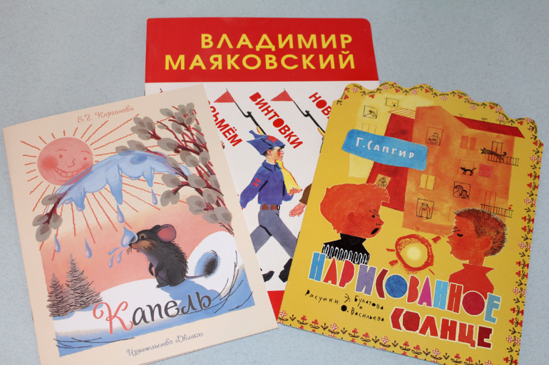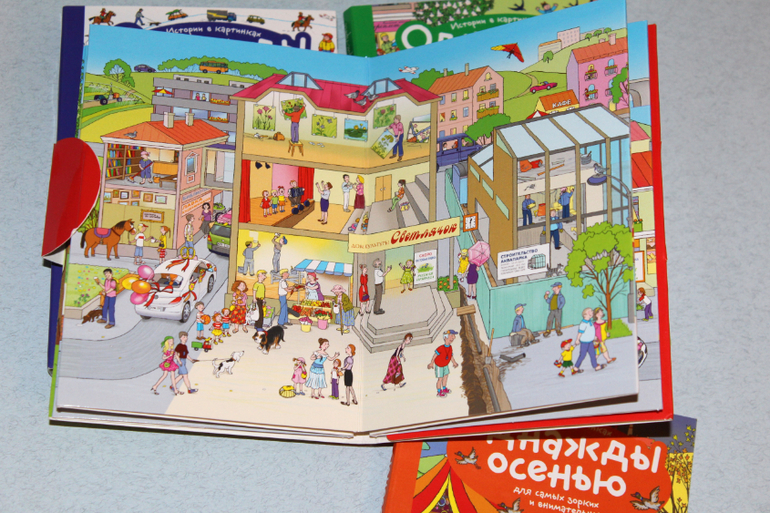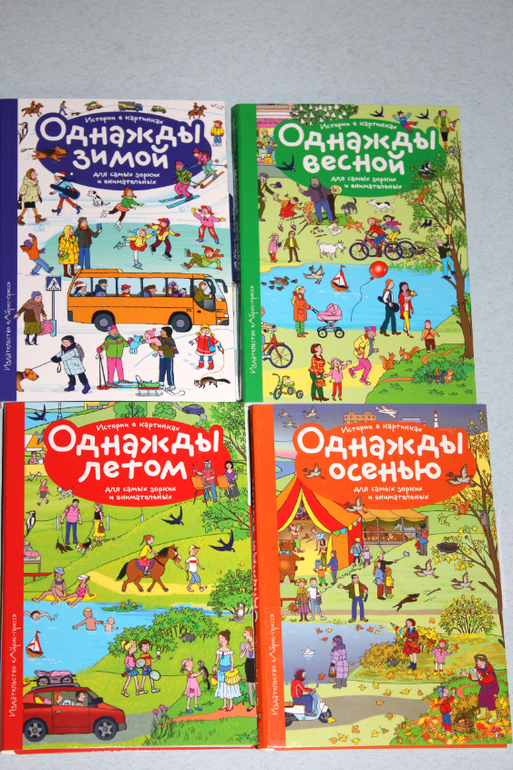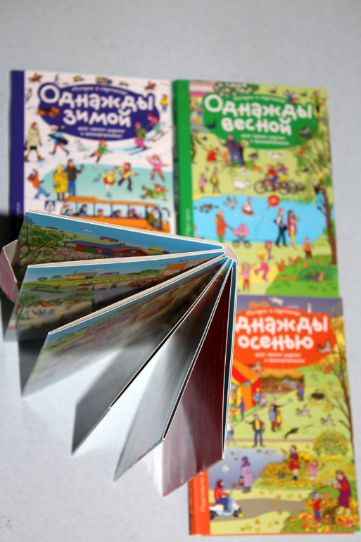 Четыре книжки-гляделки мини формата. Удобно брать с собой. Один минус - развороты не открываются полностью.