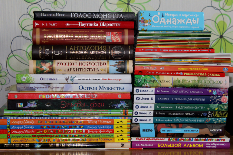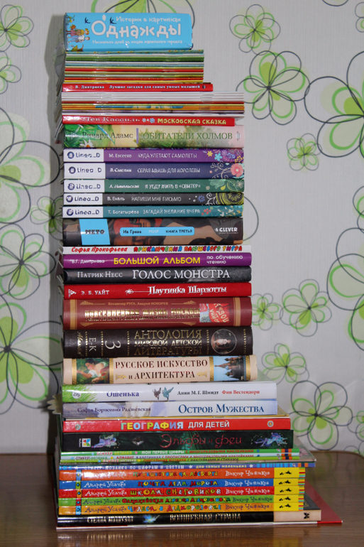 Младшая книги стопками таскает, самый главный читатель в нашем доме). Коля до неё не дотягивает.