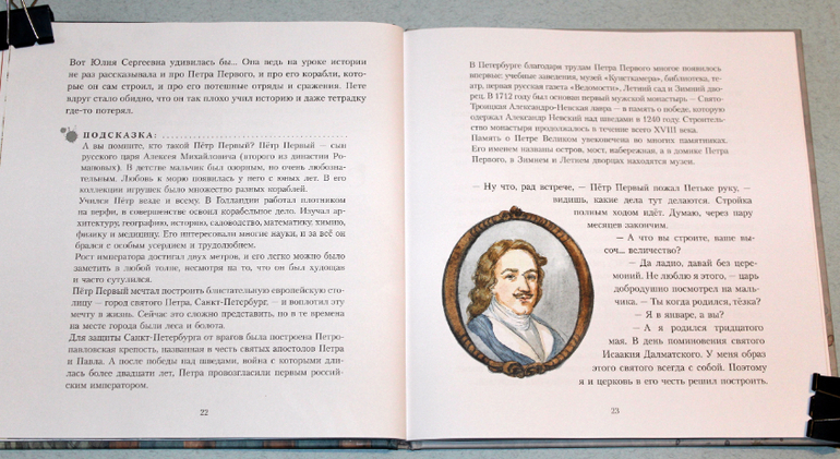 Может у жителей Петербурга книга вызовет другие эмоции, могу такое предположить, но если вы далеки от Петербургских красот, то книга вряд ли вызовет у ваших детей интерес к его достопримечательностям.