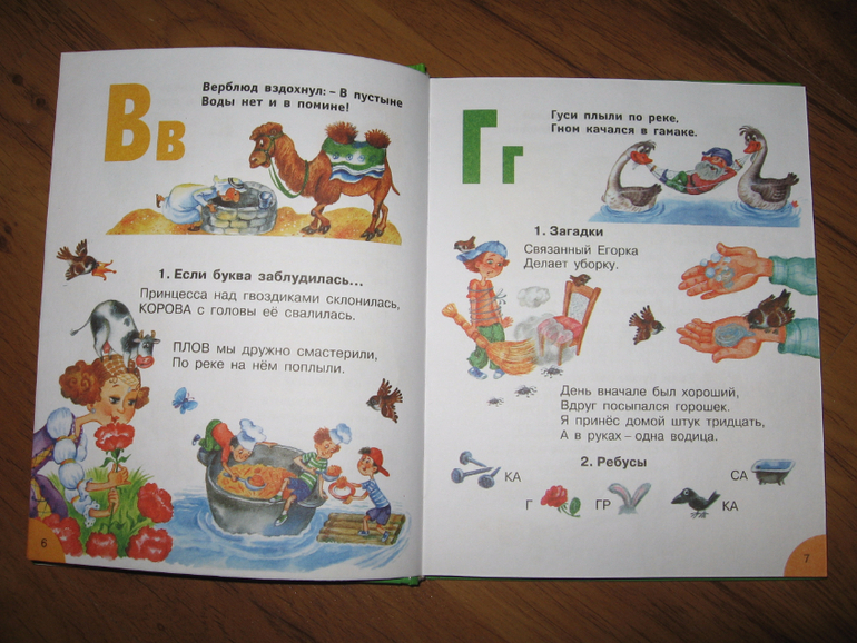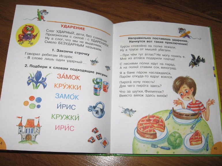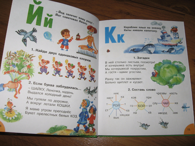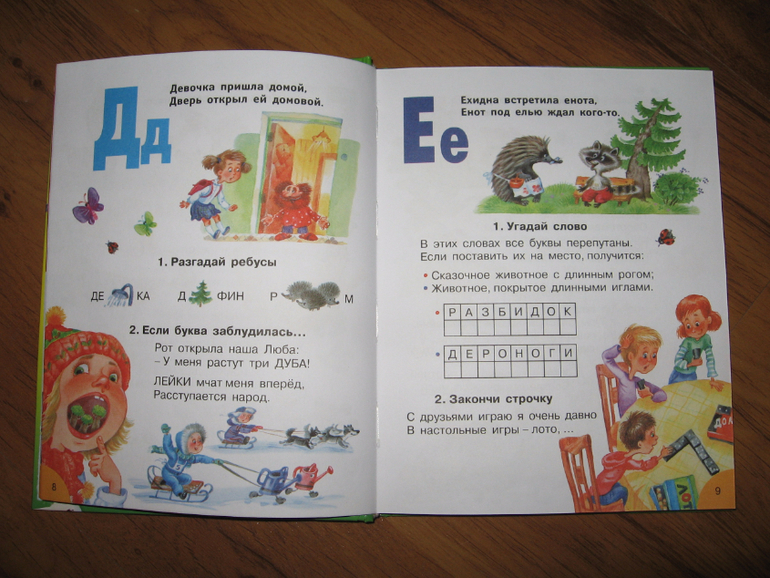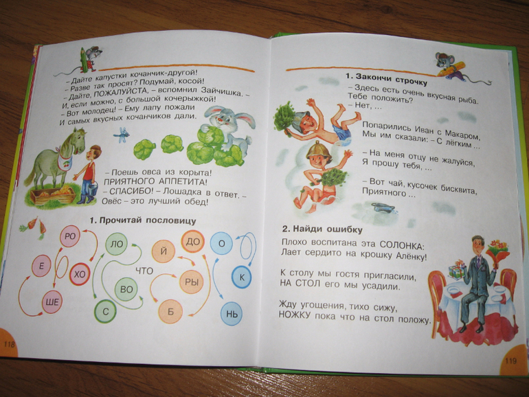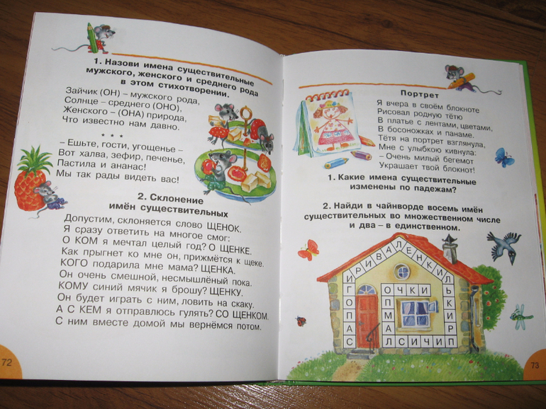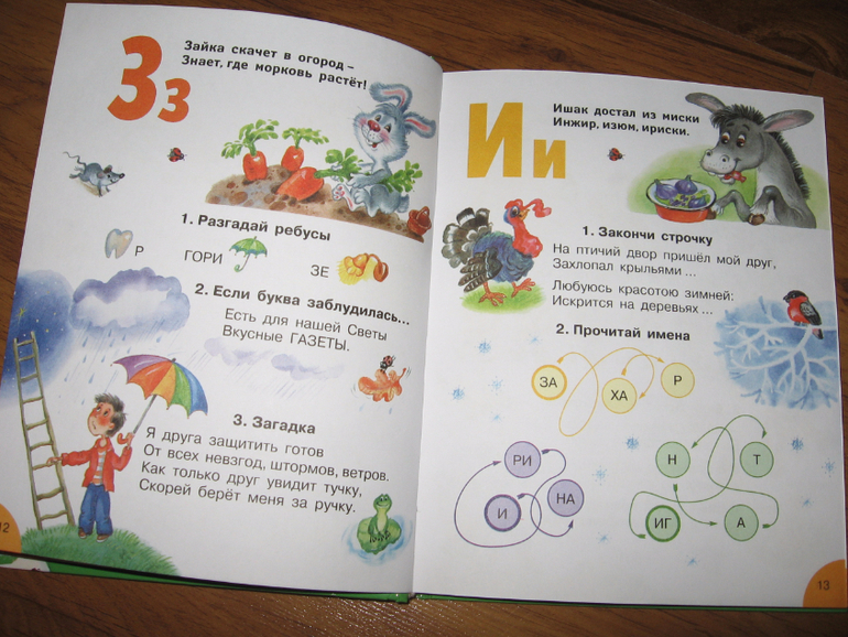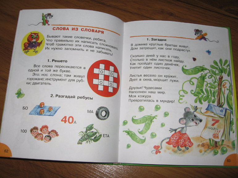 Эта книга долгоиграющая, ее хватит на всю начальную школу. В ней несколько разделов. Начинается все с банальной азбуки, потом идут звуки и буквы, парные согласны, непарные согласные, слоги, ударение. Затем большой раздел с правописанием: сочетания жи-ши, ча-ща, чу-щу и т.п.. Дальше большой раздел посвящен частям речи, следом за ним коротенький раздел "выражаем мысли" и еще куча всего. Мы сейчас осваиваем только первую часть. Хоть буквы мы уже и знаем, в этом разделе куча ребусов и загадок, да и других интересных заданий, которые Егор с удовольствием выполняет. Например, ставит на место заблудившиеся буквы, заканчивает строчки, угадывает слова и пр. Всю книгу я пока не читала, но пока ошибок я не встретила. Как там будет дальше, пока не знаю. Если что-то обнаружится - допишу.