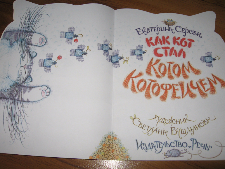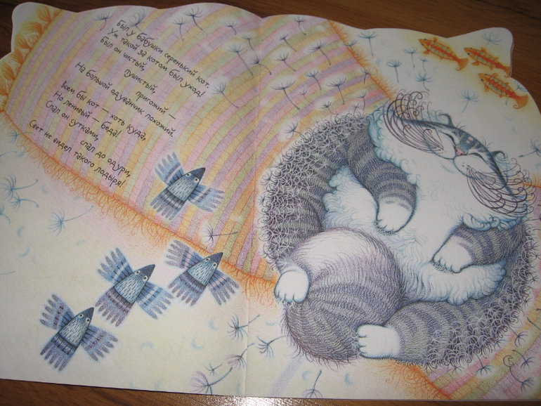 Алиса когда увидела обложку на кране монитора, сразу же сказала, что эта книга ее, и попросила купить кису. Ну как же не купить, если и сама ее хотела, и ребенок просить начал. Читана-зачитана, смотрена-пересмотрена, даже пальчик Алиса умудрилась страничкой порезать, киса нам попалась царапучая.