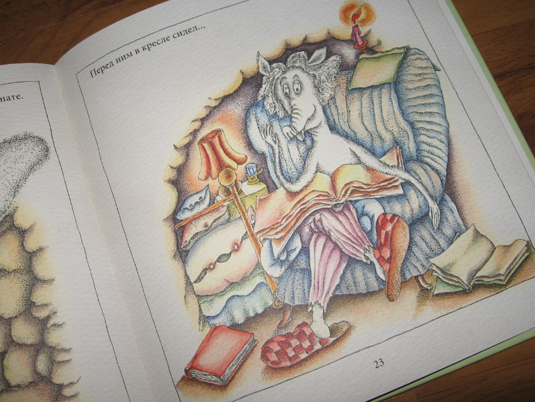 Издание у нас бюджетное, купленное спонтанно в местном книжном лет пять назад. Сама я читала эту историю еще маленькой в журнале Мурзилка. В журнале были красивые цветные иллюстрации, а в нашей книжечке они же, но черно-белые. Сыну не принципиально, т.к. других он не видел, и ему интересна сама история, а не картинки, но мне хочется приобрести и нормальное издание. Проблема только в количестве хотелок, их слишком много и они все время только увеличиваются. Но это все лирика, к делу отношения не имеющая.