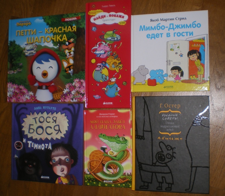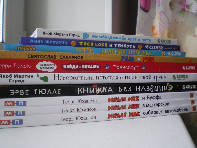 1. Мимбо и 2. Пороро - есть у нас другие книжки этих серий, очень любимы, + в прошлом месяце был всплеск любви к Красной шапочке. 3. Книжка без названия - до кучи, надо было что-то к Груше взять,