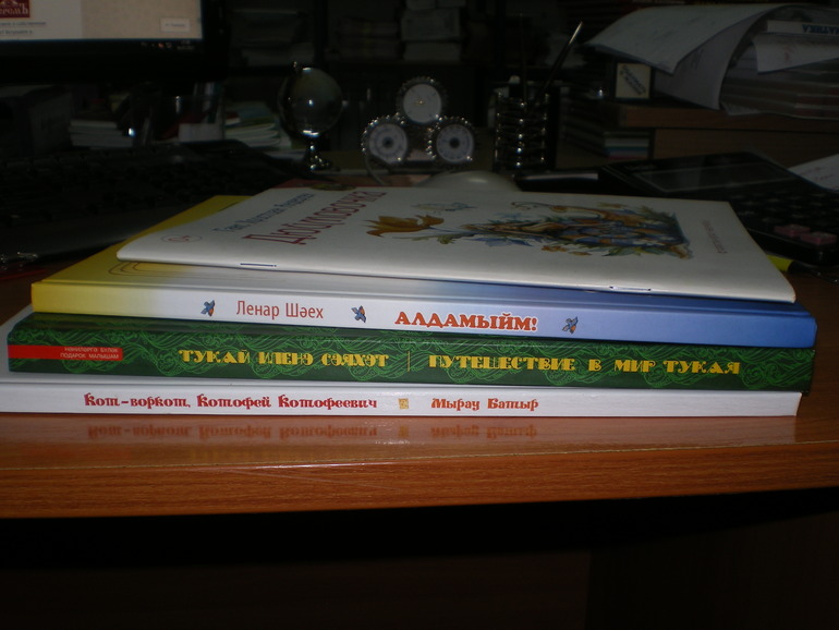 Это татарские книжечки) Моя грусть и радость... Потому что, тепло на душе становится, когда вижу тексты на татарском языке, но читаю отвратительно, свекрови на смех, половину не понимаю, достаю словарь или звоню маме...