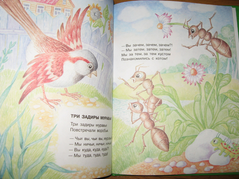 Вот ведь всю жизнь сознательную жизнь знала я наизусть стихотворение "Далеко, далеко на лугу пасутся ко...", да и не только я , его вообще все знают, а вот кто же его написал, я никогда вообще не задумывалась. Пока не приехала к нам эта книга. В моем сознании это стихотворение было чем-то народным (даже не чем-то, а веселой песенкой), сродни песенки про елочку, которая в родилась в лесу (хотя и обоих произведений есть автор). Теперь-то автора я уж не забуду, поскольку книгу мы читали много-много раз. Да и чего там читать-то, стихи коротенькие, книга тоненькая - всего 32 странички.