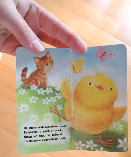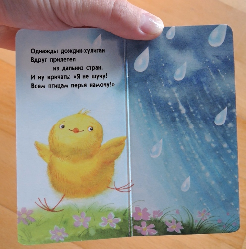 Малюсенькая книжка-картонка про цыпленка-оптимиста в стихах.