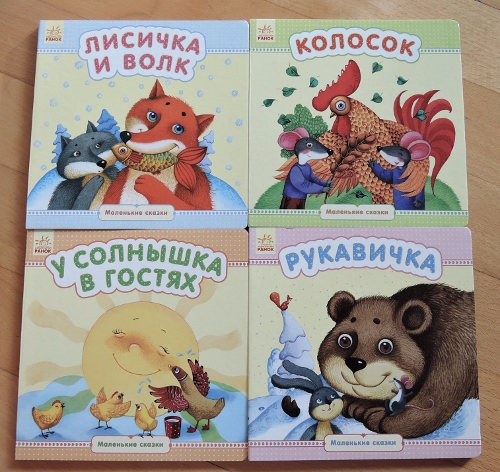 Все эти книжки есть как на русском, так и на украинском языке. Цены очень демократичные. Качественный плотный картон, очень советую.