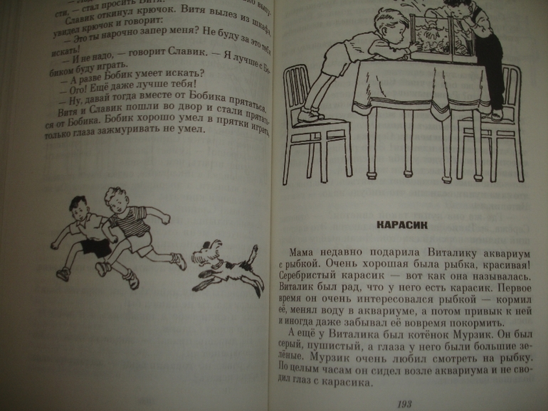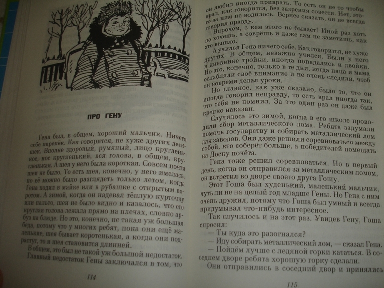 Как по мне, так уж лучше бы они отправили эту фольгу на шоколадки. Думаю, будет царапаться. На самом деле издание бюджетное. Всё в одном. 37 рассказов и сказок. В аннотации написано, что включены редкие "Бабушка Дина" и "Про тигра". Не знаю, были ли они в моей книге, но в этой это единственные рассказы, к которым вообще нет картинок. 3 повести - "Весёлая семейка", "Дневник Коли Синицына" и "Витя Малеев в школе и дома". В книге несколько художников. Рассказы в основном иллюстрировал Г.Вальк.