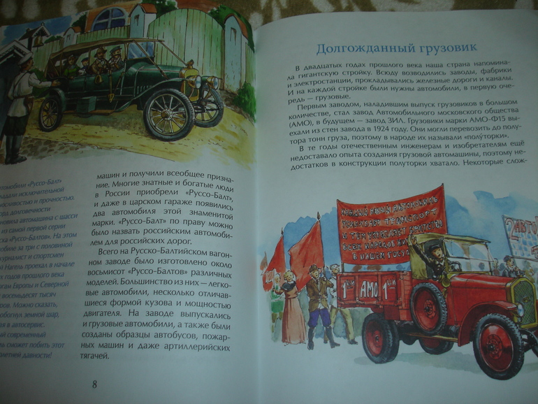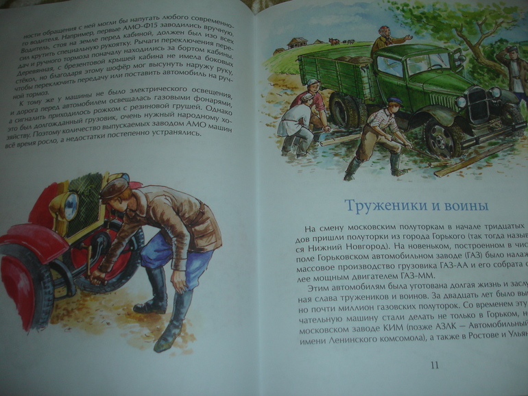 "Легендарные автомобили России" - тоже Саньку потешить. 3 день просит читать. А текст-то не для трёхлетки, сокращаю, упрощаю. Начинаем читать сразу с АМО-Ф15. Очень Саньке было интересно, как это - заводить грузовик вручную. Ещё переспрашивал, почему у водителя в кабине сбоку не было стёкол.