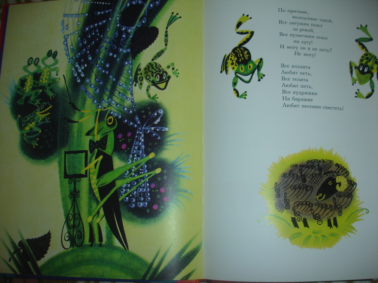 Ю.Мориц и её "Домик с трубой" - тоже мне. Была бы моя воля, я бы читали одни стихи. Мой внутренний эстет жмурится от удовольствия, глядя на эту книгу. Обложка с объёмным тиснением, деликатные блёстки. Страницы - небликующая меловка. Из-за этой меловки даже травяной зелёный и жёлто-горчичный не выглядят грязными.