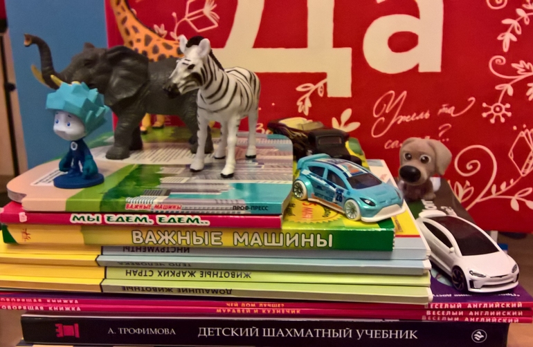 В этот раз пришлось учитывать пожелания ребенка и свои амбиции. Так что покупки получились такие, какие получились🙂 Машинки для него. Шахматы и английский для нас с ним))) И любимые карточки. Животные жарких стран у нас пострадали от собаки((( их повторно заказали -нравятся! Остальные новые. Мне описание на обратной стороне с загадкой и стишком очень нравится и ребёнок доволен! И фото с телефона, к моему сожалению.