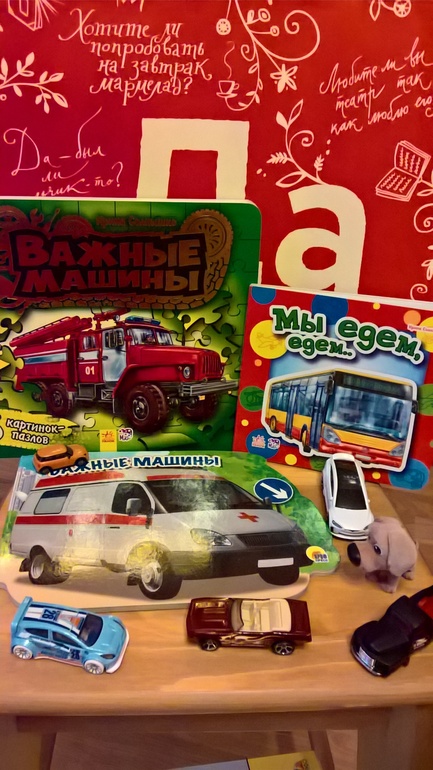Первые мной узнаваемы - от Ранок, тоже имеем, причем "Мы едем, едем..." была актуальна как в год, так и сейчас после 2 пользуется спросом. А машины-пазлы очень любит, уже полгода собирает эту книгу, хотя именно в ней меня рисунки смущают - страшненькие )