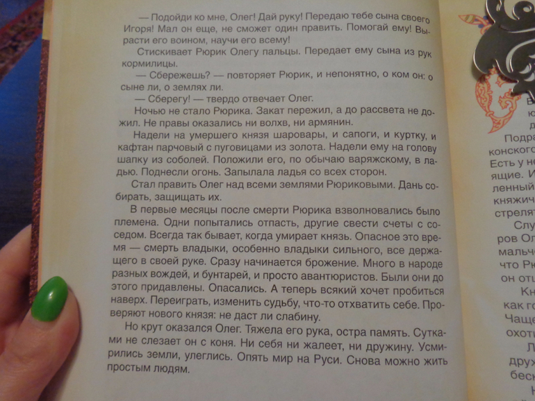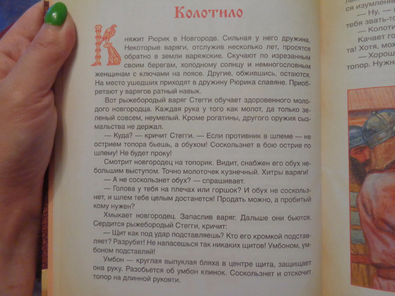 Теперь касательно текстов. Мне ООООчень понравилось! Вот так бы нам давали изучать историю! (глядишь, и знали бы чего) Много событий, много диалогов, но в очень доступной увлекательной форме! Вот знала я, что пришел варяг Рюрик, который стал править. А чего пришёл? А как пришёл? А почему он, что, свои править не могли? Можно, конечно, открыть энциклопедию или другой источник и очень сухо, но по делу ознакомиться. А тут живо, сочно, с действующими героями! Короче, очень хвалю и рекомендую!