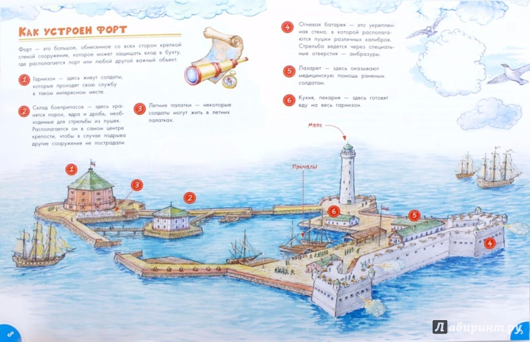 Кругом вода, кругом вода… В такой ситуации лучше быть на корабле. Как устроен парусный корабль, современный океанский лайнер, маяк, боевой форт, морской порт - всё это рассказано в небольшой книжечке "Почему корабль плывёт?".
