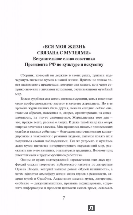 В сборник вошли истории, рассказанные не только хранителями, экскурсоводами, научными сотрудниками, реставраторами, руководителями различных музеев России, но и людьми, чья профессиональная жизнь не связана с музеями - журналистами, писателями, учителями, артистами.