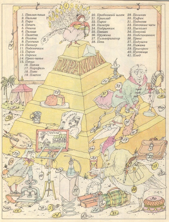В случае с этой книгой ребенок должен уметь читать или рядом должен быть взрослый. Но задания совсем не для малышей. Например, на букву Н нужно найти "небо", "насос" и... "най", на букву А - "арбуз", "алмаз" и ... "астролябию", на букву Ф - "царя", "цукаты"... и "циветту".