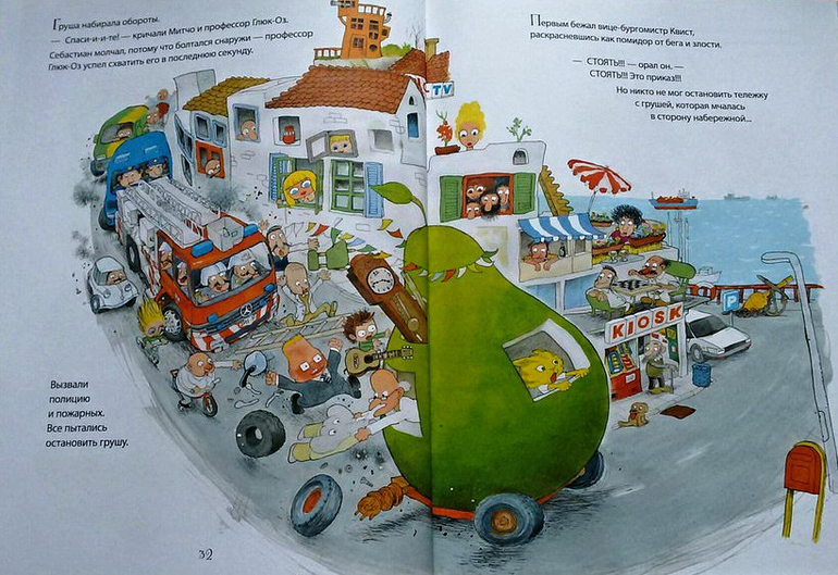 Дочка не была особым любителем книг про Мимбо-Джимбо, наверное, поэтому безумного восторга от гигантской груши тоже сначала не было. Мы читали эту книгу и в три, и в четыре года, но только после пяти она проявила интерес к самой истории и к тому, чем же все закончилось.
