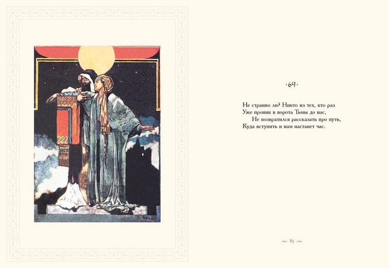 Эдвард Фицджеральд перевел рубаи с персидского на английский язык в 1859 году, открыв Омара Хайяма всему миру. Через какое-то время ему удалось тематически объединить 101 рубаи и создать целостную поэму.
