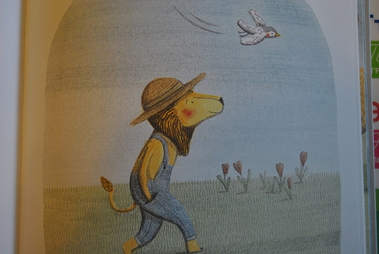 5. Марианна Дюбюк (автор и иллюстратор) «Лев и птичка». Издательский дом «Самокат». 2016 год. Книга после которой остается легкая грусть. История про одинокого льва, который работая на своем огородике, находит раненную птичку. Выхаживает ее и дает на зиму приют, при этом привязывается к птичке всем своим сердцем. Приходит весна, птичка поправилась и улетает со своей стаей дальше. Лев грустно смотрит ей в след… Ребенок, которые плохо еще говорит, глядя на эту картинку, четко произнес: «Не переживай!». Пожалела льва, значит, какая-то внутренняя работа в душе у нее произошла в этот момент. За одно только это можно сказать спасибо автору. Ну а история про льва и птичку на этом не заканчивается. Жизнь после потери продолжается, а значит и история тоже.